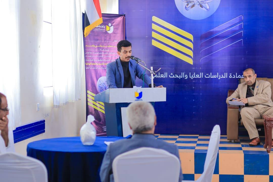 وفي كلمة السلطة المحلية، أكد المهندس رشاد الأكحلي، وكيل المحافظة لشؤون الخدمات، أهمية البحث العلمي في معالجة الإشكاليات التنموية وتعزيز النهضة الوطنية، مشيدًا بدور الجامعة في رفد المجتمع بالكفاءات البحثية والعلمية.