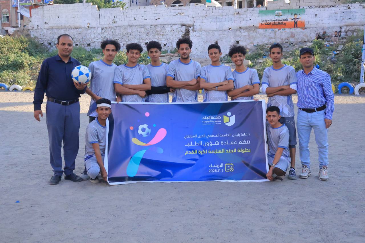برعاية رئيس الجامعة الأستاذ الدكتور محي الدين القباطي، دشّنت عمادة شؤون الطلاب في الجامعة ، مساء اليوم، بطولة الجند السابعة لكرة القدم، بمشاركة مختلف الأقسام والمستويات الدراسية.