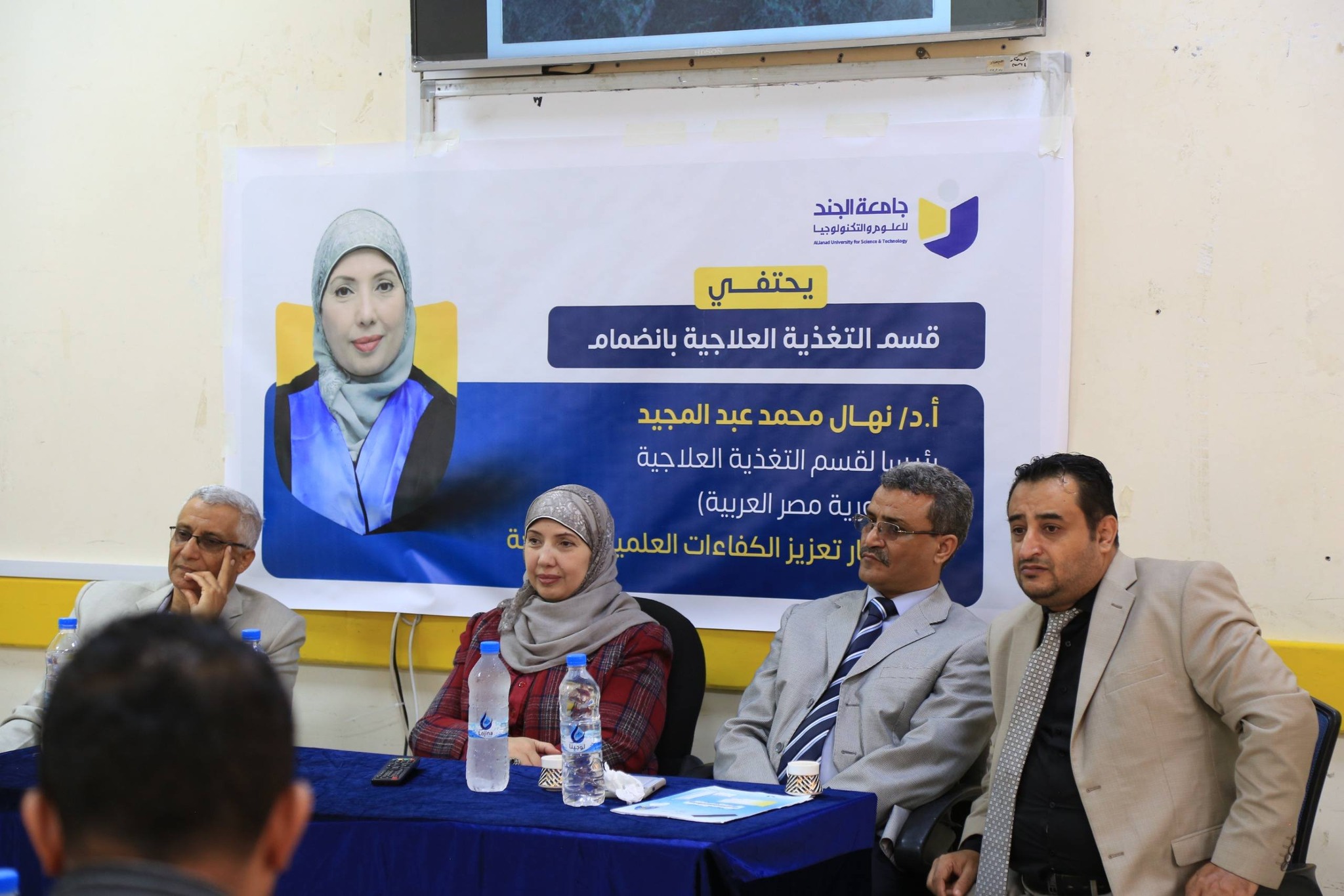 شهدت جامعة الجند للعلوم والتكنولوجيا، صباح اليوم، حفل استقبال للأستاذ الدكتور نهال محمد عبدالمجيد، من جمهورية مصر العربية الشقيقة، التي انضمت إلى كادر الجامعة كرئيس لقسم التغذية العلاجية.