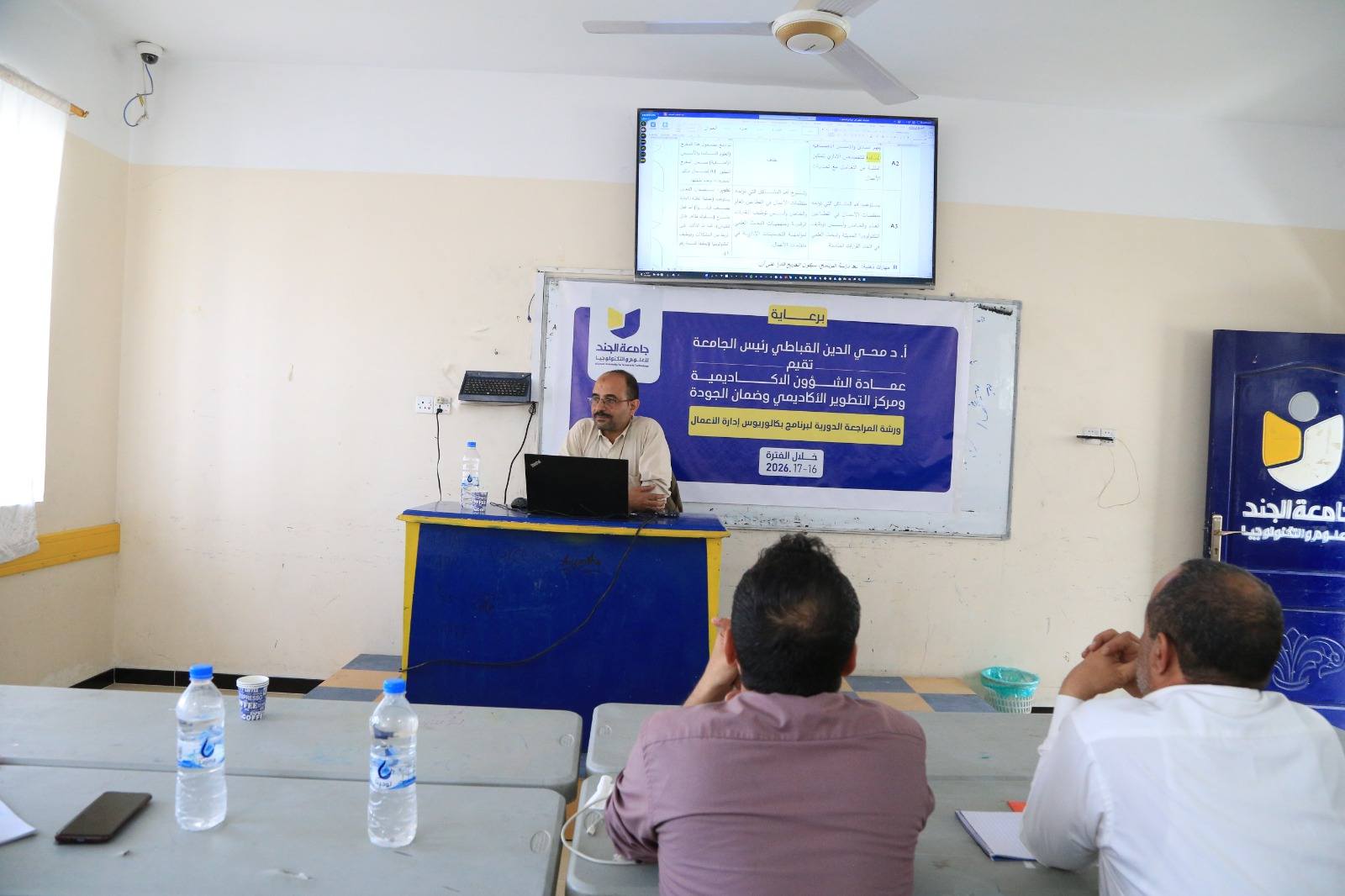 نظّم قسم إدارة الأعمال بكلية العلوم الإدارية والإنسانية في جامعة الجند للعلوم والتكنولوجيا ورشة عمل أكاديمية متخصصة للمراجعة الدورية لبرنامج بكالوريوس إدارة الأعمال، وذلك في إطار جهود الجامعة المستمرة لتطوير برامجها الأكاديمية وتعزيز جودة مخرجاتها التعليمية بما يواكب متطلبات التطور الأكاديمي واحتياجات سوق العمل.
