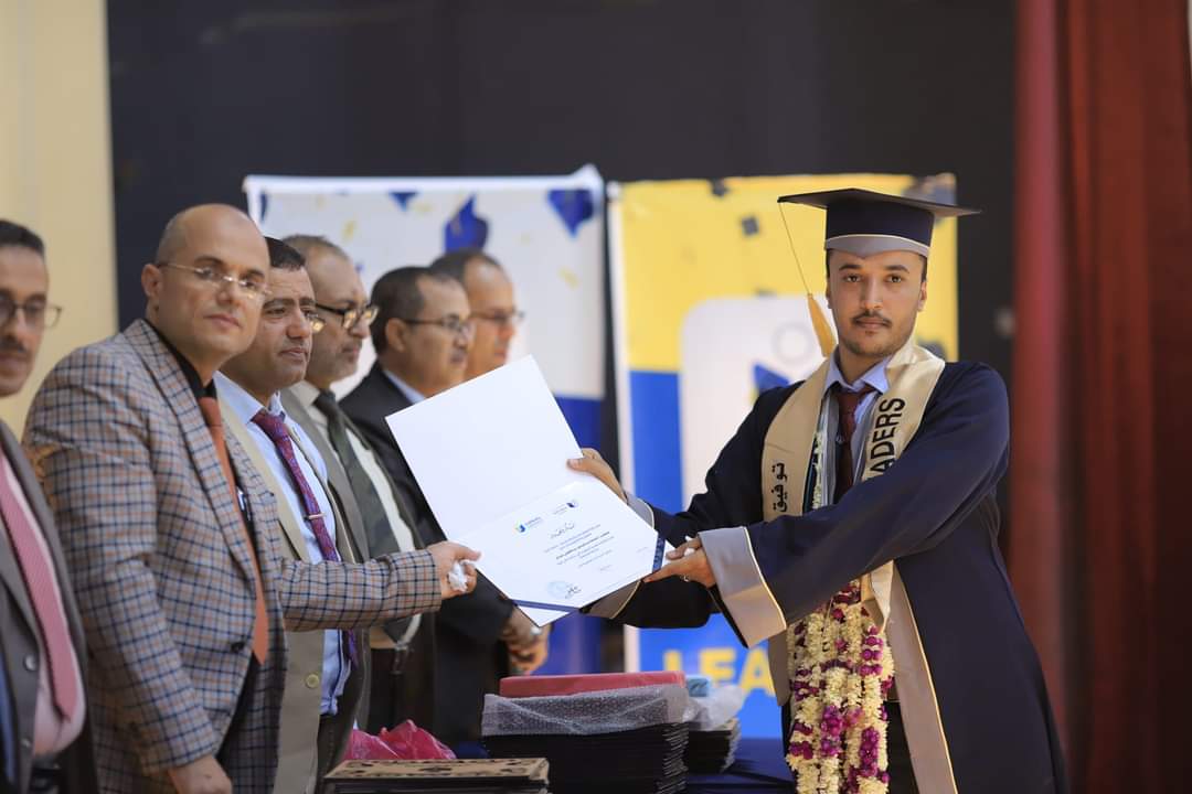 Faculty of Administrative Sciences and Humanities continues the celebrations for the graduation of the 2023 batch “LEADERS” for the second consecutive day. The event held for the departments of Sharia and Law, International Business Administration, Management Information Systems, and English Language and Translation, under the auspices of the University President, Dr. Mohyeddine Al-Qobbati.
