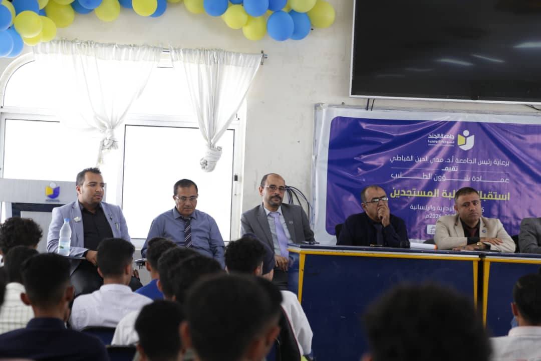 اختتمت عمادة شؤون الطلاب في الجامعة ،فعاليات استقبال الطلبة المستجدين للعام الجامعي الجديد ، بفعالية استقبال المستجدين في كلية العلوم الإدارية والإنسانية، برعاية رئيس الجامعة ، الأستاذ الدكتور محي الدين القباطي، إيذانًا بانطلاق العام الجامعي الجديد 2025-2026م.