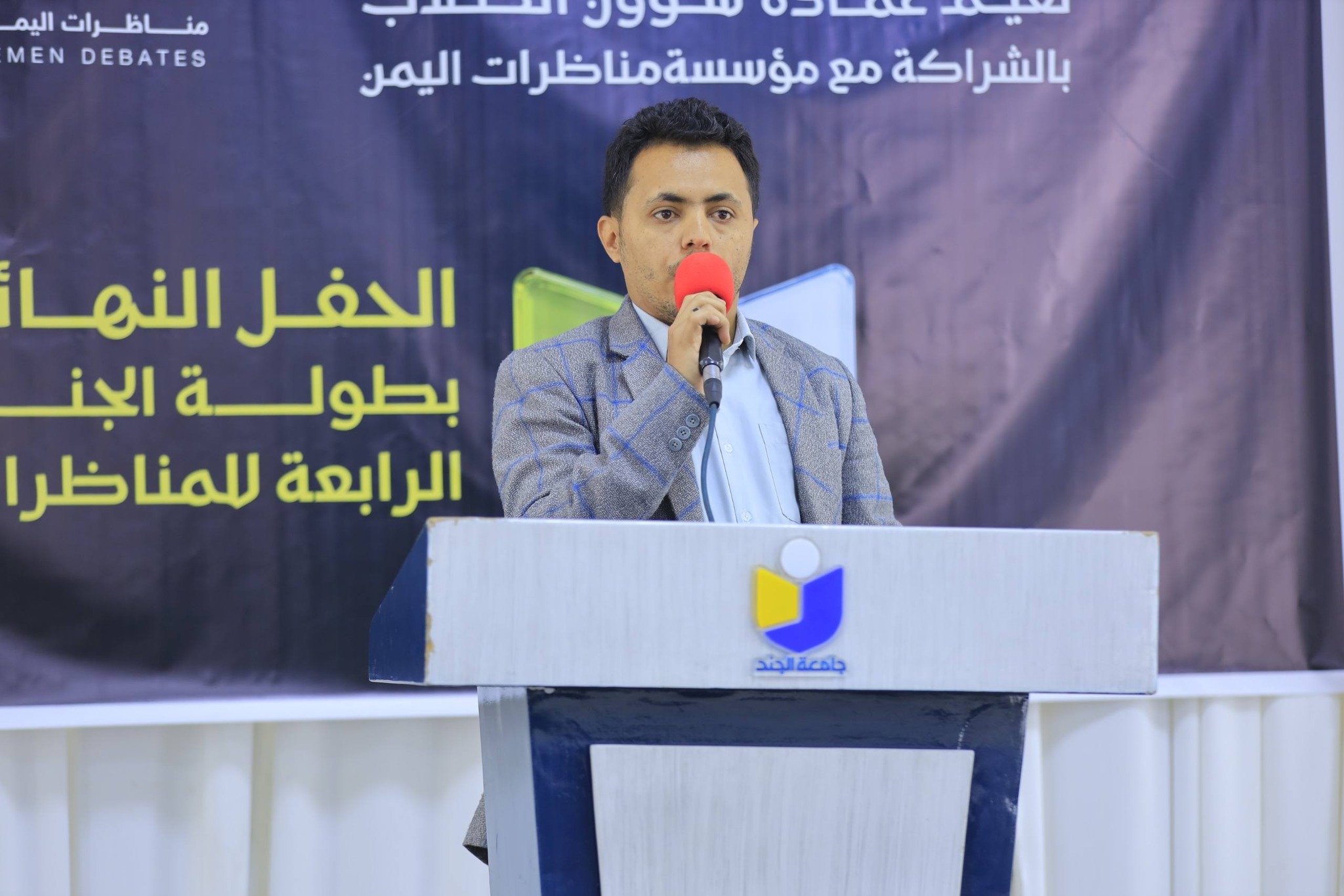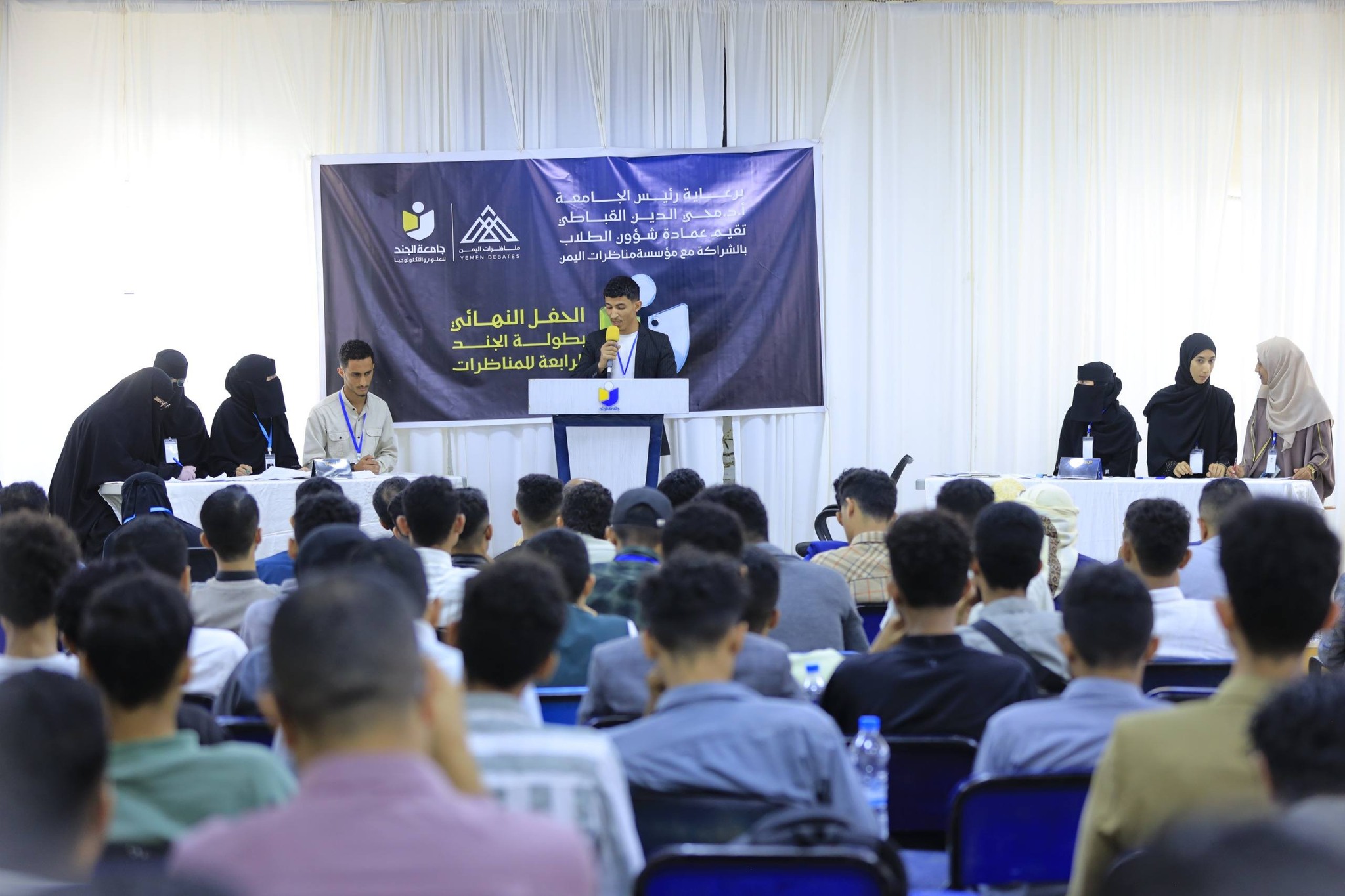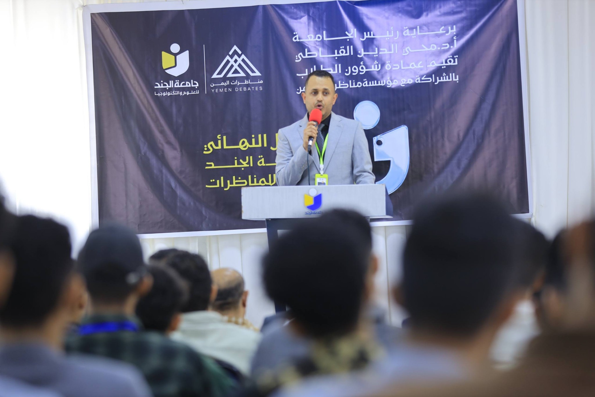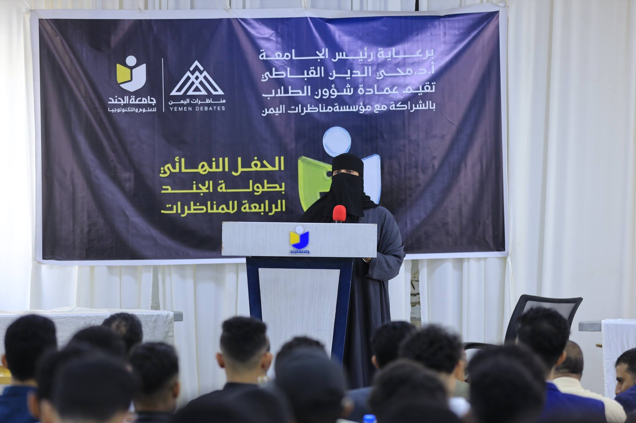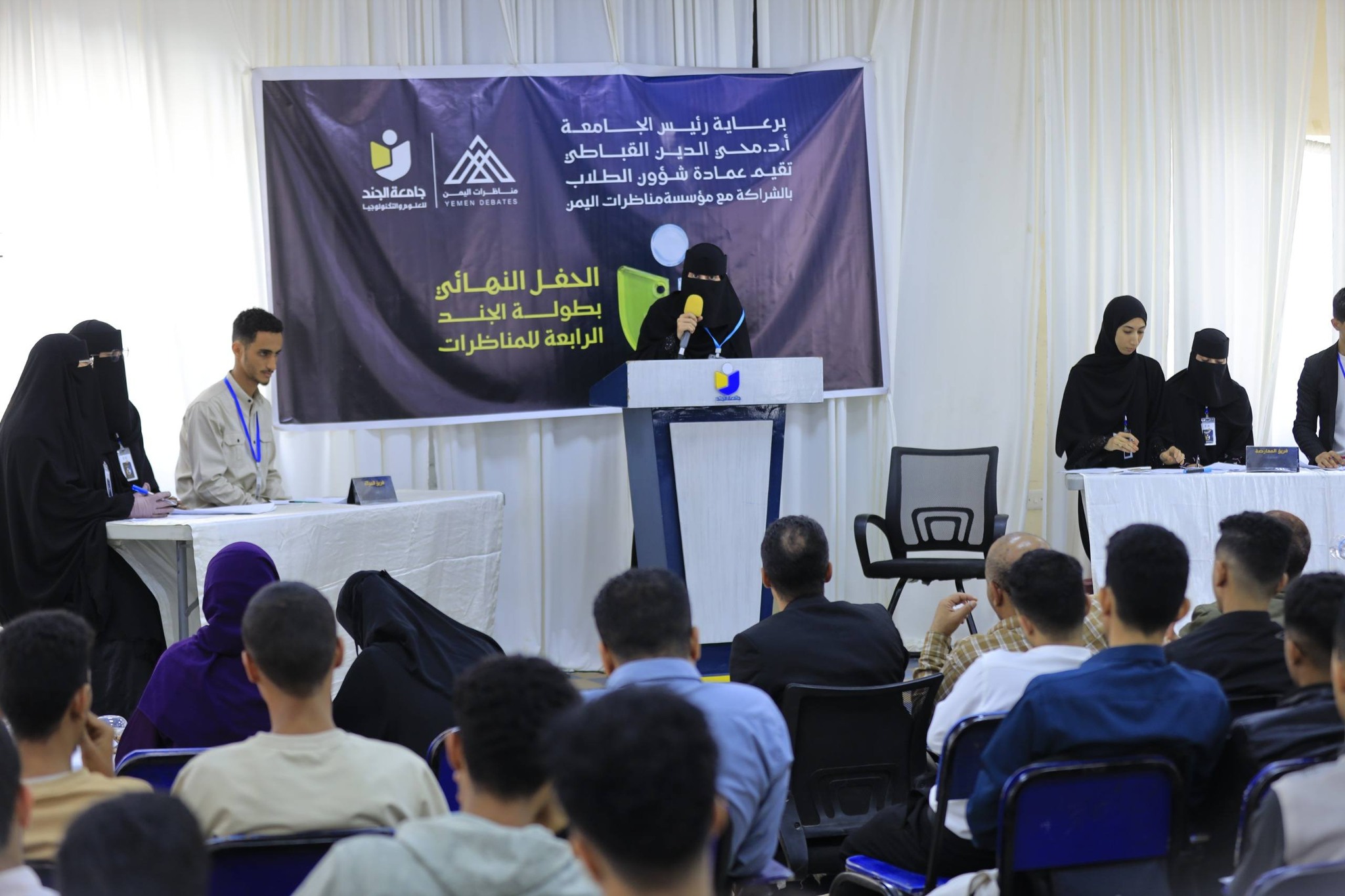 اختتمت جامعة الجند للعلوم والتكنولوجيا، اليوم، بطولة الجند الرابعة للمناظرات، برعاية رئيس الجامعة الأستاذ الدكتور محي الدين القباطي، وبالشراكة مع مؤسسة مناظرات اليمن، وتنظيم عمادة شؤون الطلاب، في إطار حرص الجامعة على تعزيز مهارات الحوار والتفكير النقدي لدى الطلبة.