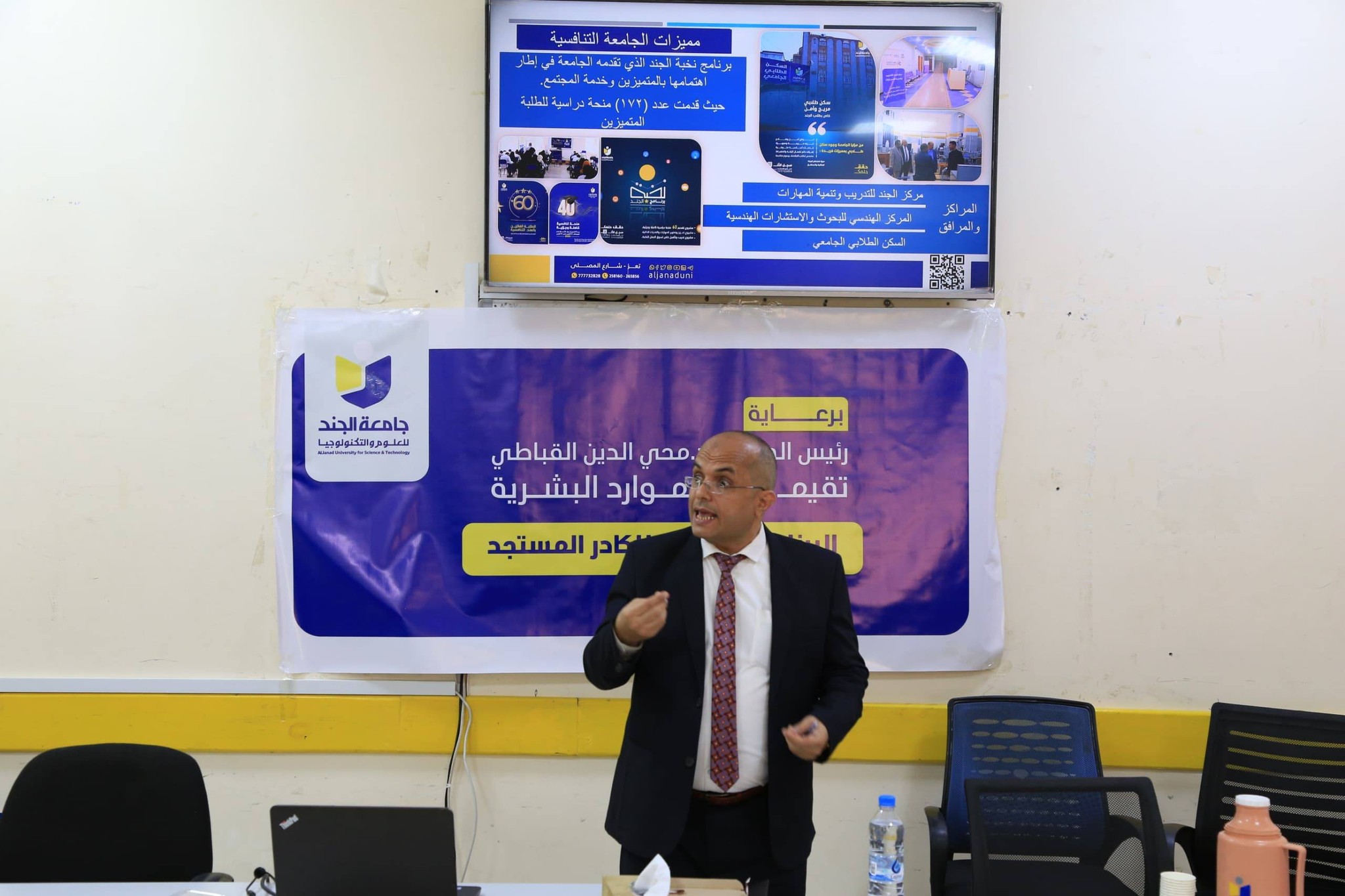 تواصل جامعة الجند للعلوم والتكنولوجيا تنفيذ برنامجها التدريبي للكادر المستجد والتطوير المهني، الذي تنظمه إدارة الموارد البشرية برعاية رئيس الجامعة الأستاذ الدكتور محي الدين القباطي، وينفذه مركز الجند للتدريب وتنمية المهارات، ضمن توجه الجامعة نحو تطوير رأس المال البشري وتعزيز كفاءة الأداء المؤسسي.