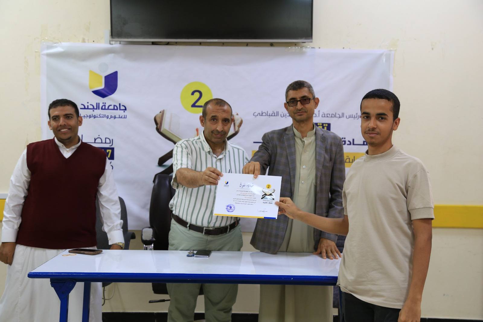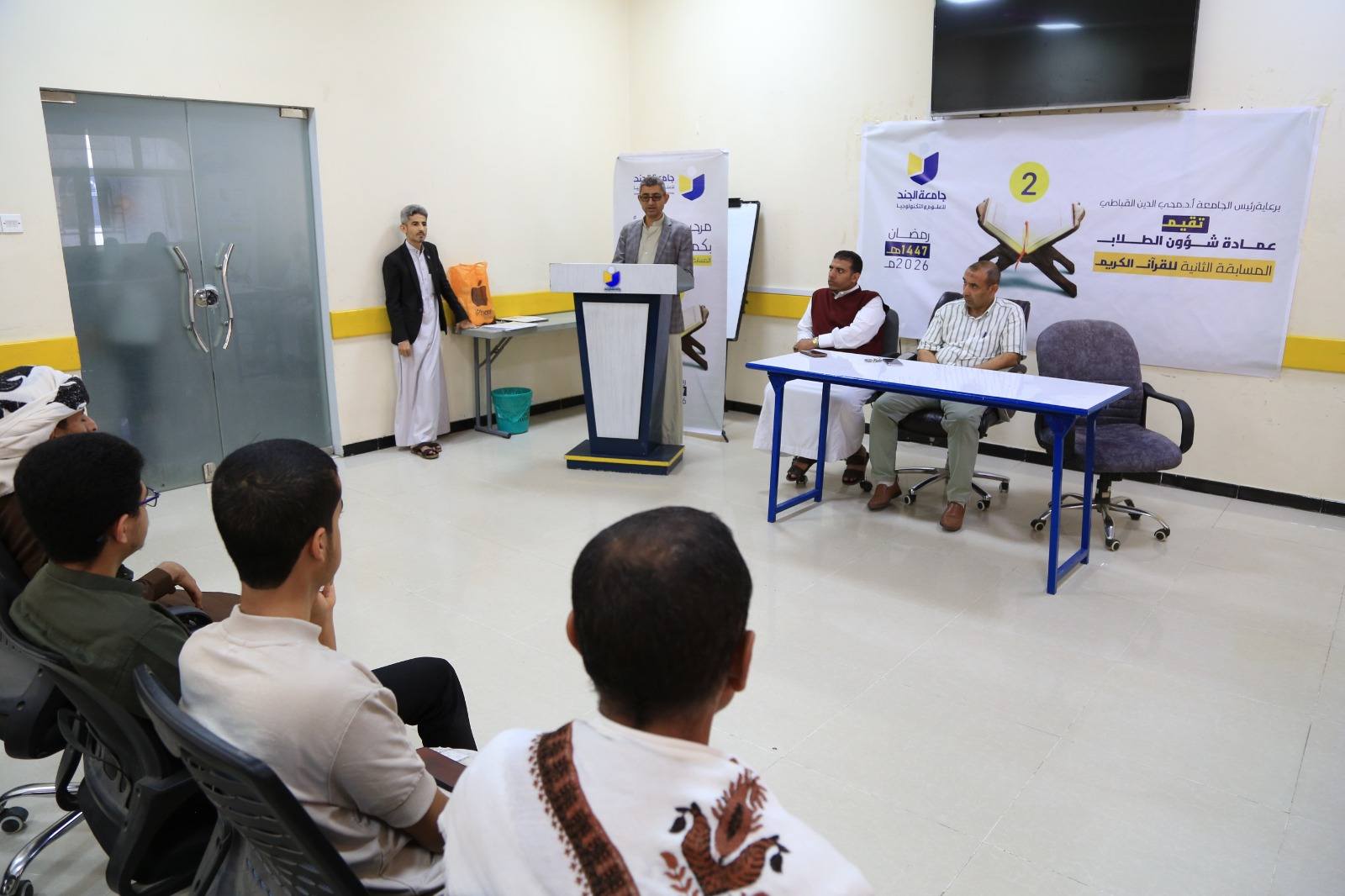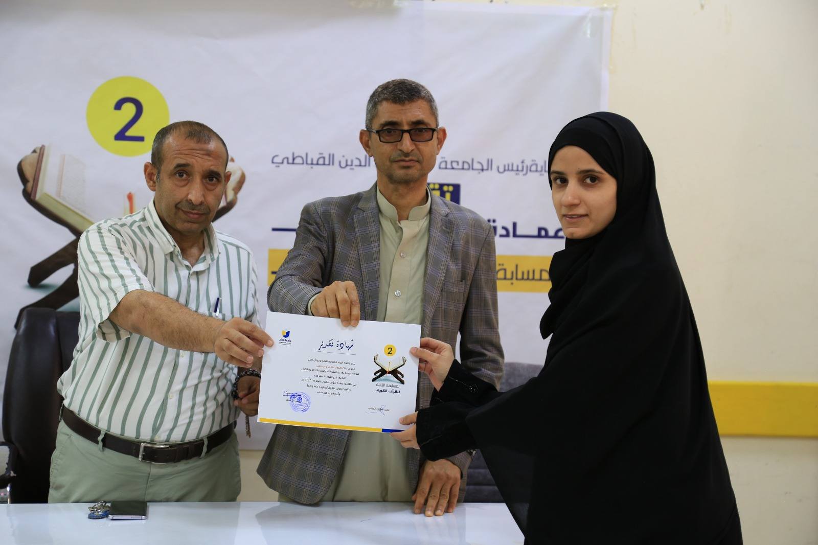 اختتمت عمادة شؤون الطلاب في الجامعة، مسابقة القرآن الكريم في موسمها الثاني، والتي أُقيمت برعاية رئيس الجامعة الأستاذ الدكتور محي الدين القباطي، بمشاركة أكثر من 60 طالبا وطالبة، في أجواء إيمانية وروحانية عكست اهتمام الجامعة بتنمية القيم الدينية وتعزيز ارتباط الطلبة بكتاب الله تعالى.