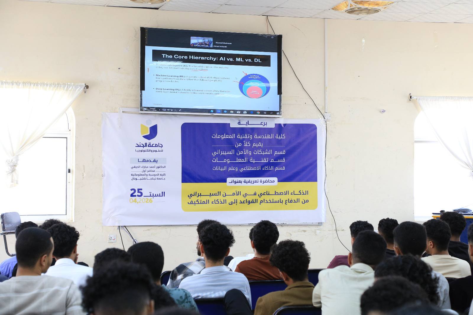 وتولي الجند اهتماماً متزايداً بتنظيم الفعاليات العلمية في مجالات التقنية، بما يتيح للطلبة فرص التفاعل مع الخبرات المتخصصة، ويسهم في تطوير قدراتهم لمواكبة التحولات المتسارعة في مجالي الذكاء الاصطناعي والأمن السيبراني.