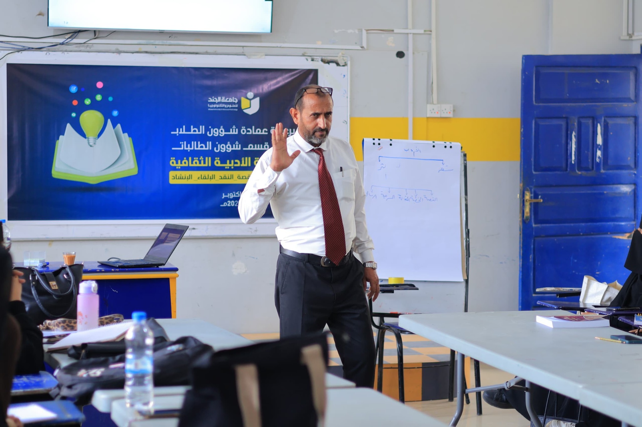 The program opened with a training workshop on article writing, short story composition, and literary criticism, conducted by writer Ahmed Al-Jabri. During the session, Al-Jabri discussed key principles and techniques that help students develop their creative and analytical writing abilities.