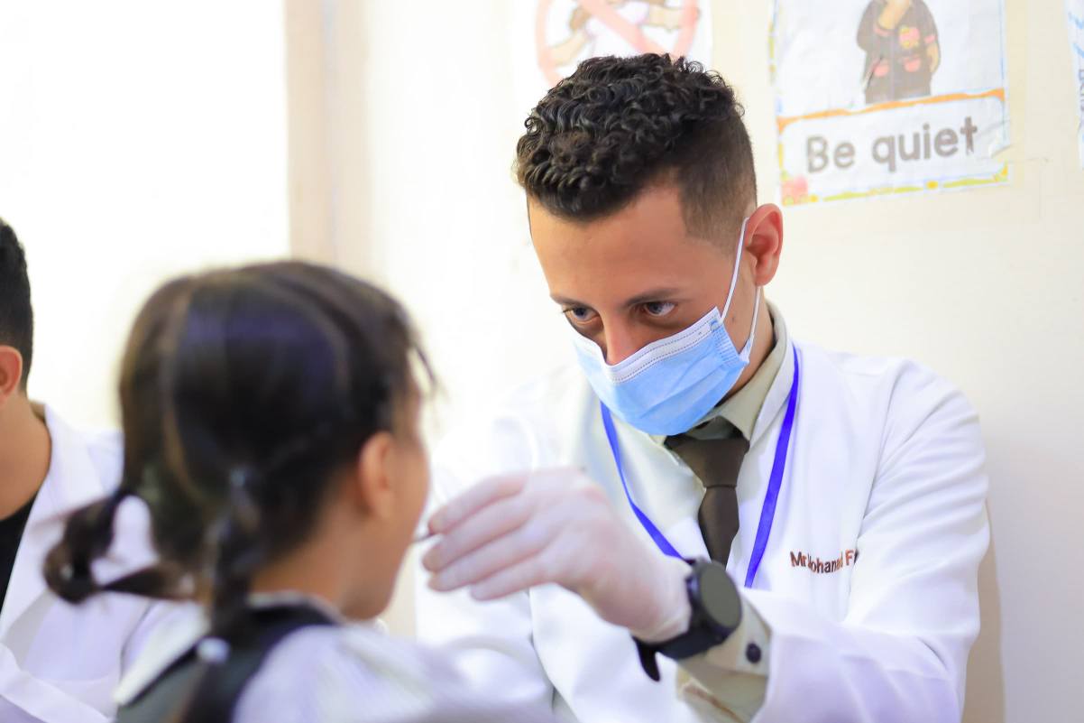 As part of the visit, dental students conducted on-site medical checkups for children to assess their oral health, identifying cases that require follow-up treatment at the university’s dental clinics.